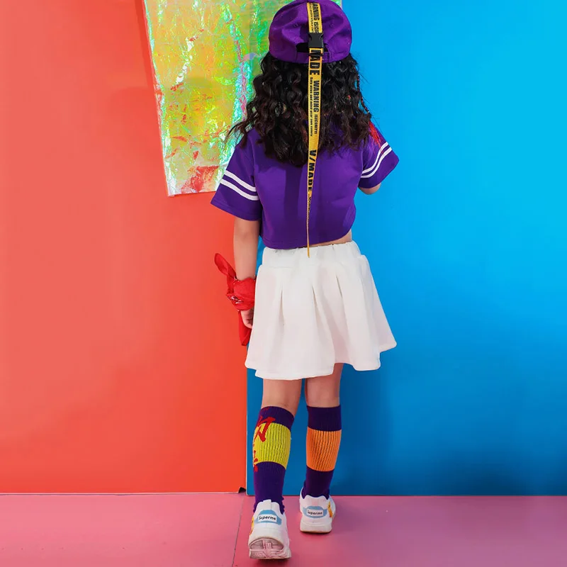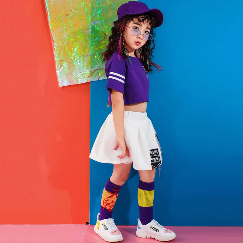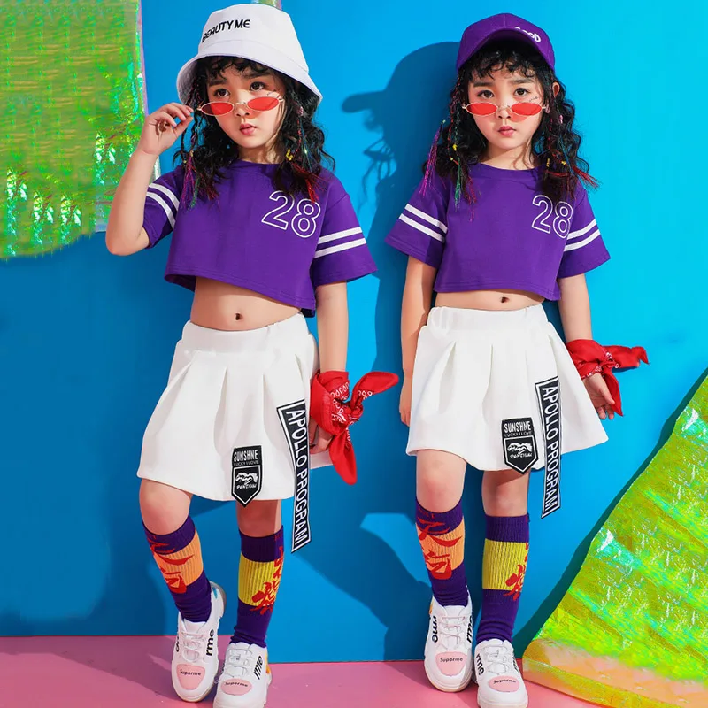 Best Jazz Dance Costume For Girls Purple Hiphop Dance Clothes Street Dance Rave Outfit Kids Cheerleader